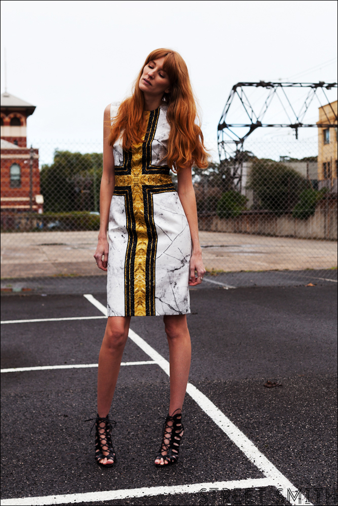 This is the  third in the looks I shot with Street Smith and Studded Hearts. This dress was an absolute favourite, not merely for the fact it was a little more covered up and warmer than the Josh Goot Bustier and Strapless dress I had previously worn on this extremely chilly and rainy Melbourne day, but also for the flattering mid length and slimline cut.