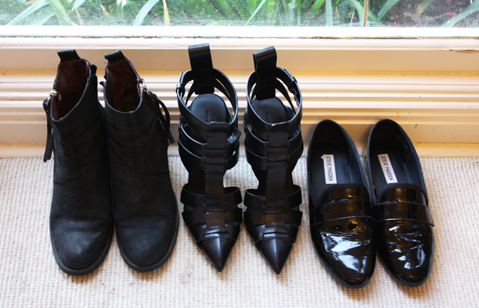 Black Shoe essentials Steve Madden Boots, Alexander Wang Heels, Steve Madden Smoking slippers