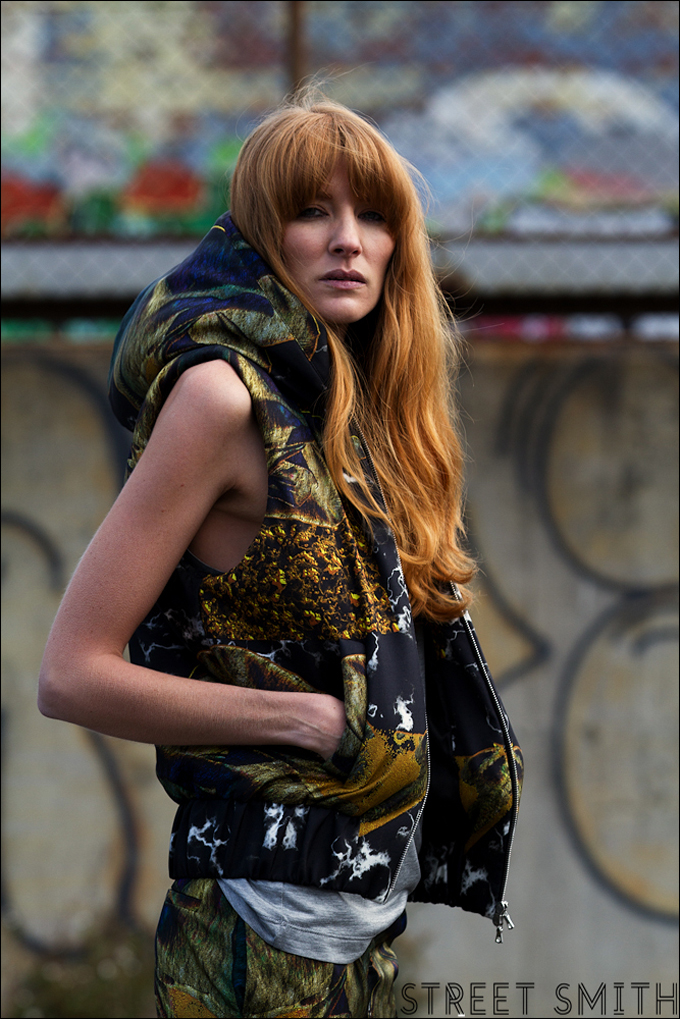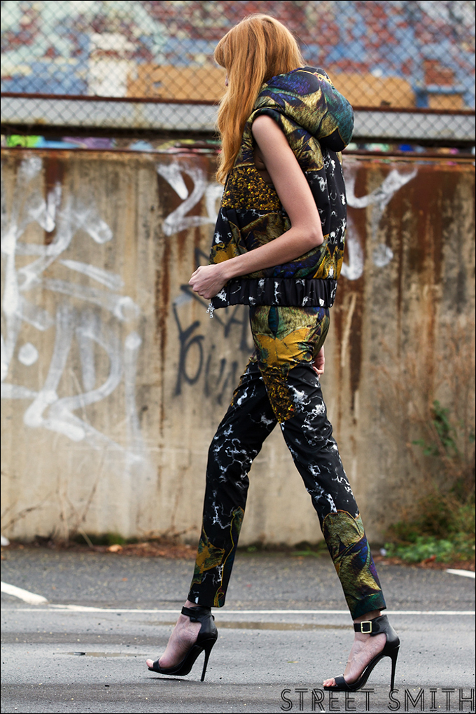 Last but not least, this is the final look I shot with Street Smith and Studded Hearts, and the first time I had worn head to toe print, which I happen to love but never had the guts to try. I’ve always had my eye on a Josh Goot bomber or vest, and I love that he continues to product these in varying prints each season, this one is up there as a standout for me, the colour combination and print placement are the perfect balance. And as for the warmth factor, well I was hanging to get this padded vest on by the end of the shoot, I’m pretty sure I was numb all over by the time we shot this look, but withstanding rain and icey wind was well worth it for the end result.