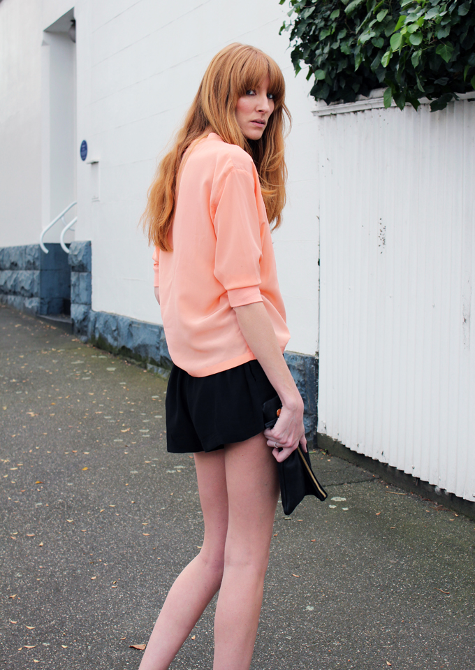 In case you haven’t noticed I’m not a big colour person, I usually stick to the basics of Grey, Black and lots of White. But every now and again I feel the urge to inject some colour into my outfits and I seek out something the I know I’m not going to feel to unlike myself in. The Anguish T-shirt from the Maurie & Eve Spring 13 Loveless collection ticked all the boxes for me, the slouchy-ness of the silk and the modern shape give this top a relaxed but dressed up appeal, while the soft peach hue adds a hint of colour, which is more than welcomed in this bleak Winter. Oh and yes this also comes in Black and White, both of which are high on my must have list.