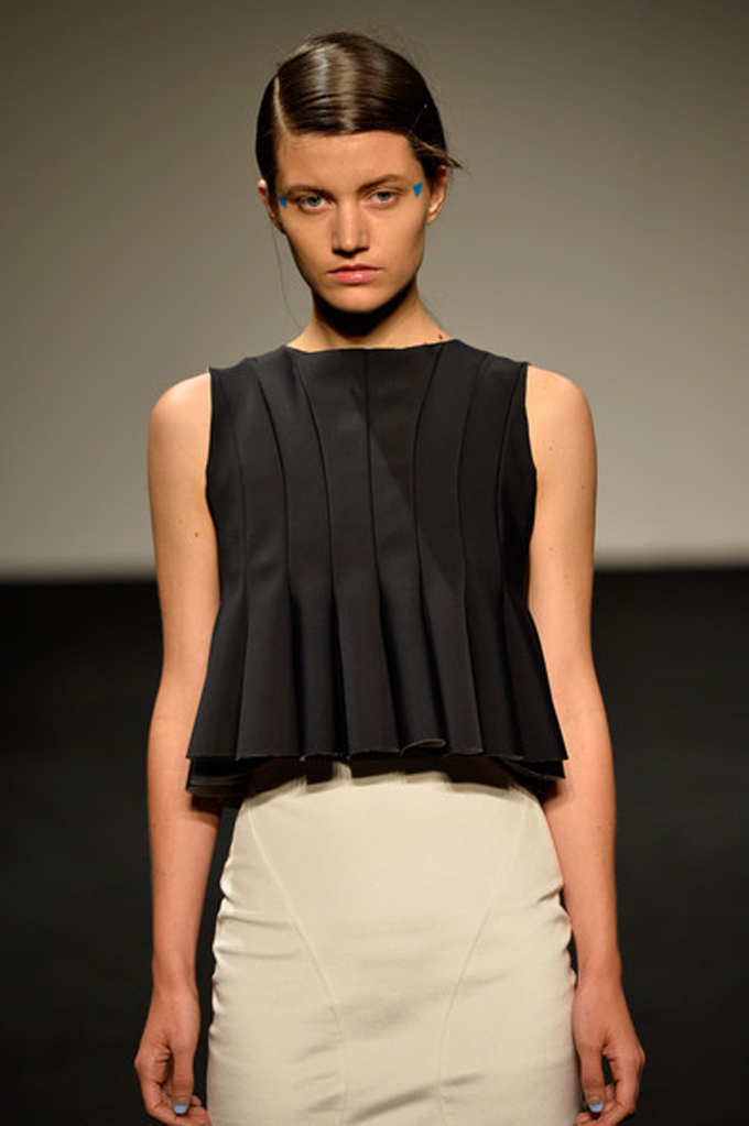 In vogue.com on April 10, 2013 MBFWA Day 2 Highlight – Ellery Ellery SS13 ‘Renegades’ Spring 13 – Sculptural, exaggerated sleeves, super-flare trousers, proportion and texture, minimalism, lace and fur. By AmyHamilton / Leave a comment