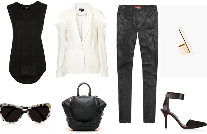 In net a porter, Ssense, topshop on April 3, 2012 Classics Topshop Tank Topshop Blazer Prism Sunglasses Alexander Wang Handbag Lanvin Trousers Maison Martin Margiela Ring Alexander Wang Heels By AmyHamilton / Leave a comment