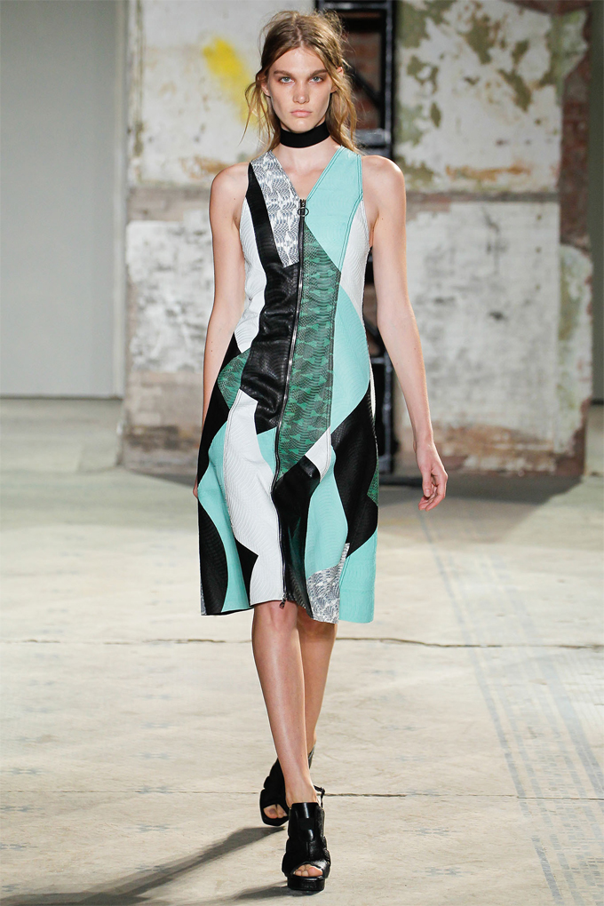 As usual Proenza is my highlight of NYFW, I watched the live stream of this collection yesterday and fell in love with all that perforated and patch worked leather straight away. The boxy style coats and jackets are classic Proenza while the digital prints inspired by the internet or rather Tumblr, which have been sliced and cut up to be almost unrecognisable take Proenzas use of colour and texture to a whole new level. The final few dresses embellished with flat sequins on the bodice and silver grommets on the skirts were a definite favourite.
