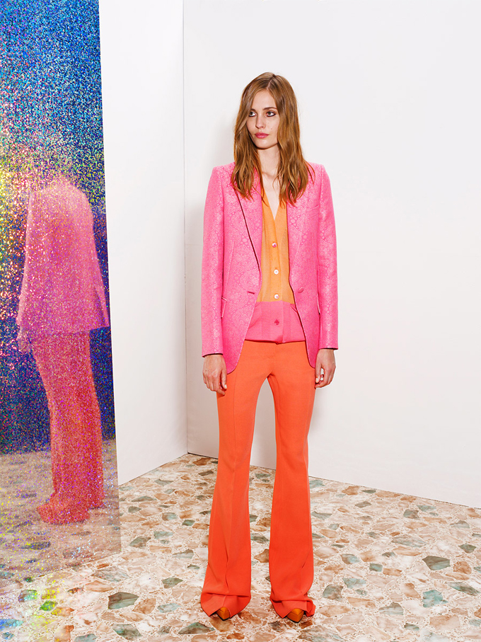 Sensory overload or what!…this is possibly one of my favourites to come out of the resort collections thus far, the colour and texture alone are enough to make my heart skip a beat and I don’t know what to look at next, the holographic pumps and clutches or that amazing colour clash of tangerine and hot pink, not to mention the 3 layers of leopard. What makes this collection for me though is the somewhat nostalgic feeling I get when I realise that I’ve seen these prints (or something very similar) in a another life time or rather flicking through my Mum and Dads old photographs. I’m pretty sure I’ve seen this sweet 70s vibe before on upholstery, wallpaper and lampshades they had back in the day.