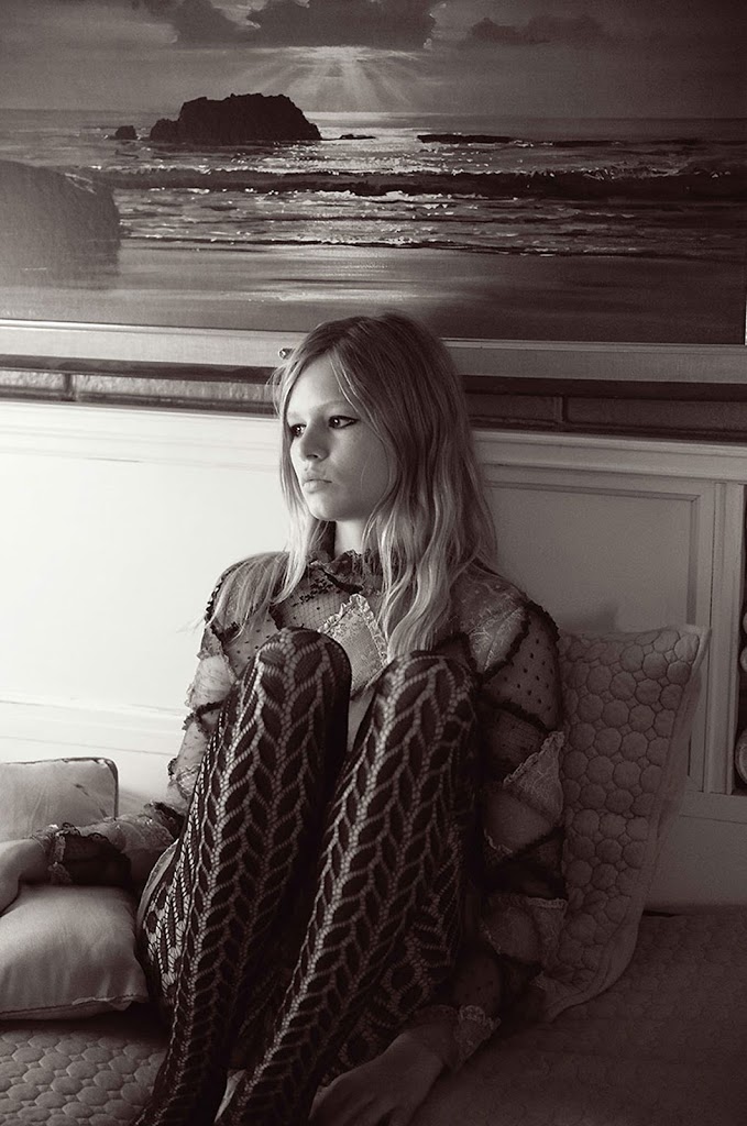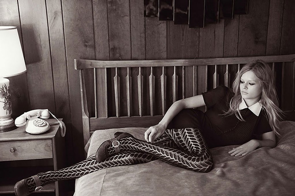 Anna Ewers + Glen Luchford are certainly someones discovery of the perfect recipe.. Cue this latest editorial with it’s 60s vibe; charcoal eyes, wood veneer panelling, and Mary-Janes .